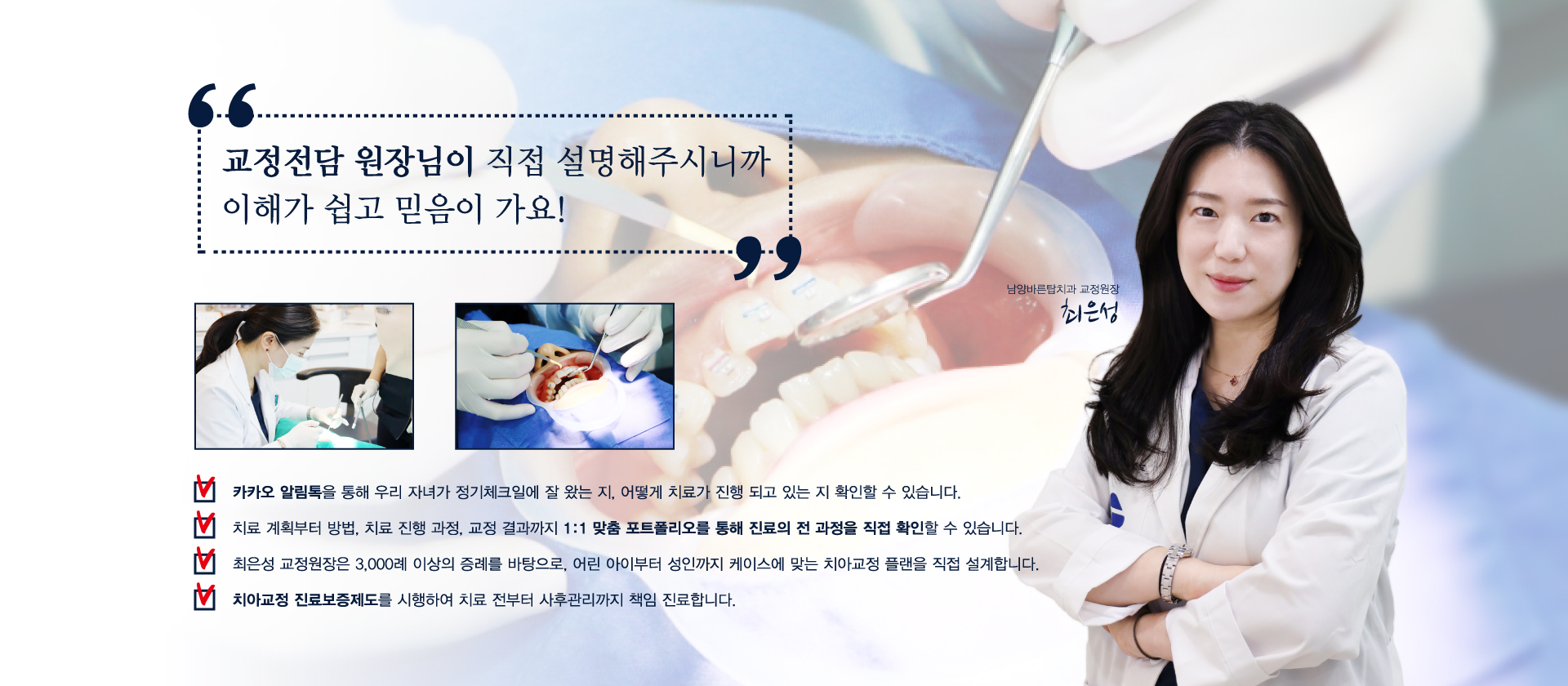 1:1 맞춤 케어를 통해 처음부터 끝까지 책임지는 치아교정을 만나보세요.
