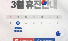 ♥남양바른탑치과 3월 대체 휴일 정상진료 안내♥