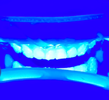 특수 램프를 이용해 미백젤을 활성화합니다.