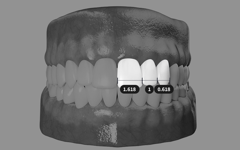 첫 번째 앞니와 두번째 앞니, 그리고 송곳니가 각각 1:0.618:1.618의