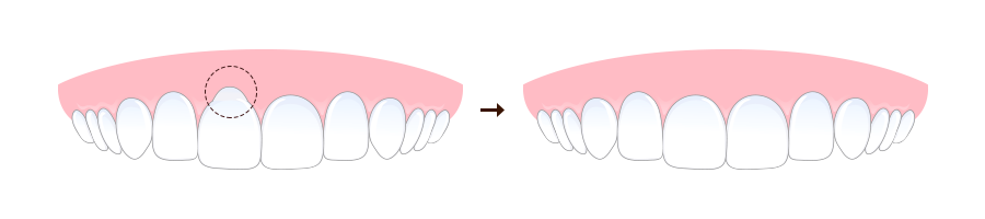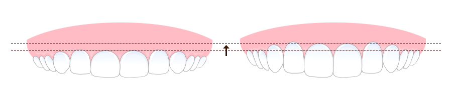 • 좌우 잇몸의 크기가 비대칭 또는 미소선과 조화가 되지 않아 어색할 경우