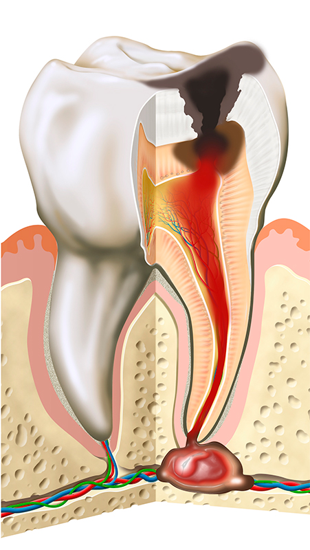 충치가 심하게 진행되어 신경(치수)까지 손상되면 신경 조직에 염증이 생겨서