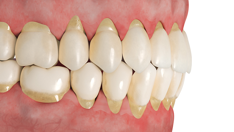 잇몸질환이 시작되면 잇몸이 치아를 제대로 감싸지 못해 잇몸과 치아가 내려앉습니다.