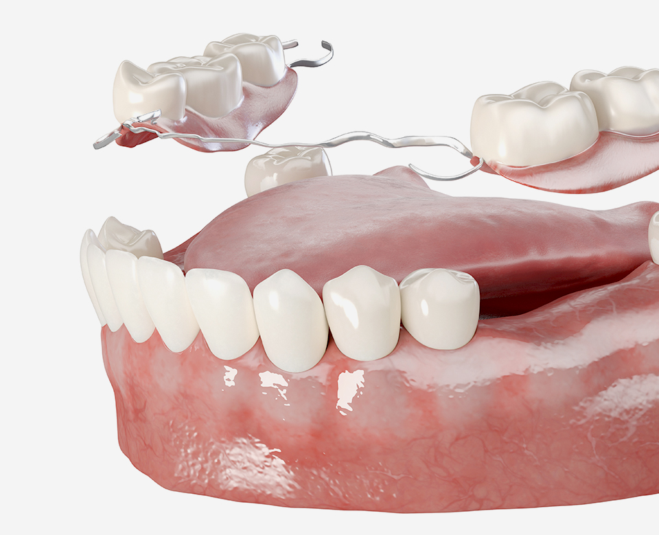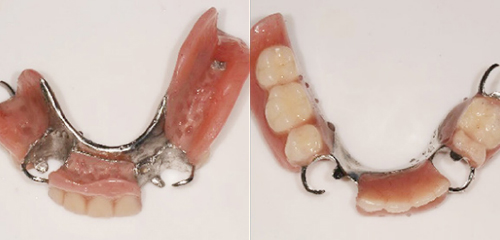 몇 개의 자연치아가 남은 경우 상실된 치아를 보충해주기 위해 부분틀니를 하게 되며, 자연치아에 비할 수는 없으나 음식물을 씹는데 큰 도움이 됩니다. 부분틀니를 유지해주는 금속은 조직과 친화력이 높은 금이 좋으나 비용이 많이 들게 되므로 일반 금속 또는 일반 금속에 비해 가벼운 티탄으로 제작하기도 합니다.