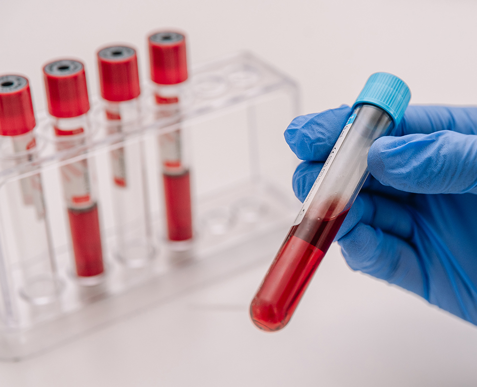 환자의 팔에서 10ml의 소량의 혈액을 채취합니다.