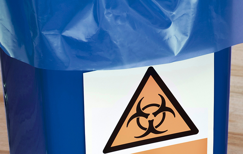 1회용 기구는 의료 폐기물 용기에 폐기됩니다.