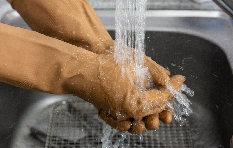 화학약품을 사용하여 눈에 보이지 않는 오염물을 제거합니다.