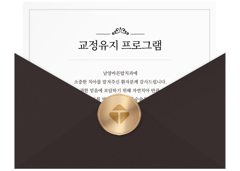 치아 교정 치료를 마친 분들께 건강한 치아를 유지할 수 있도록 정기적인 관리를 도와드리고 있습니다.