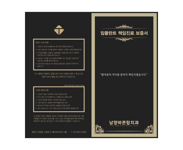 경제적 부담이 큰 임플란트와 치아교정, 일반 보철치료를 받으신 분들께 책임 보증제도로 걱정을 덜어드립니다.